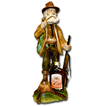 Diese handgeschnitzte Holzfigur ist der passende Rahmen für das “Suhler Waffenöl”. Und dieses steht in in Form einer 100 ml Flasche schon gleich zu Füßen des Jägers bereit. “Waidmanns heil!”