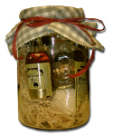 Schon fix und fertig finden Sie in diesem Glas eine Ansatzmischung zum Ansetzen eines eigenen Likörs sowie eine Probierflasche des Likörs.
